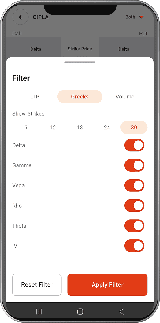 Yes. Stocko offers InstaOptions, a dedicated options trading screen with a strategy builder, advanced option chain, real time Greeks, payoff charts, margin insight and multi leg execution. This gives active options traders and scalpers the tools they need on one focused screen.