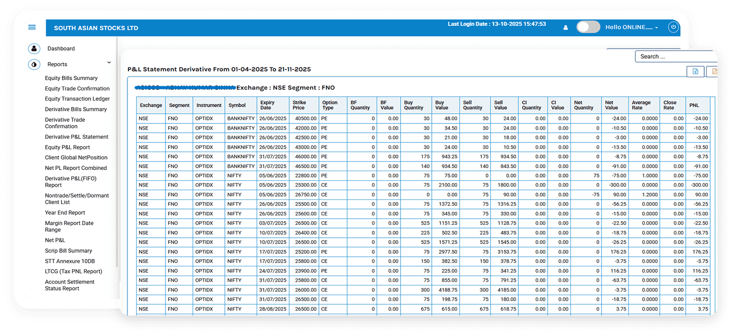 View complete profit and loss details for all your derivative trades in one consolidated report.