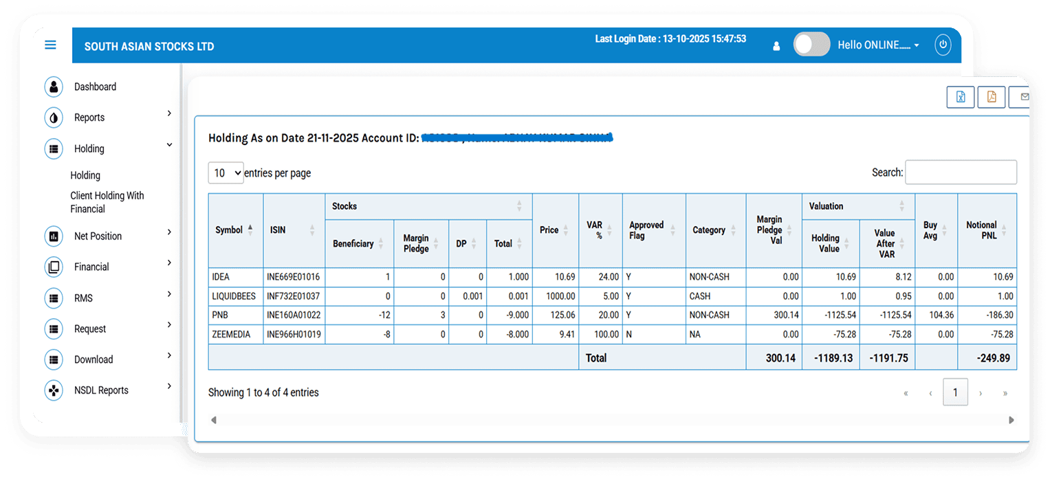 Check your current shareholdings and their latest status together in one up to date window.