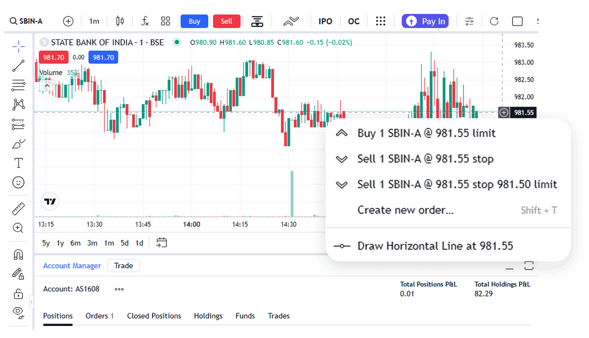 Trade directly from TradingView charts, build options strategies, automate with APIs, and track every rupee, all in one connected trading suite.