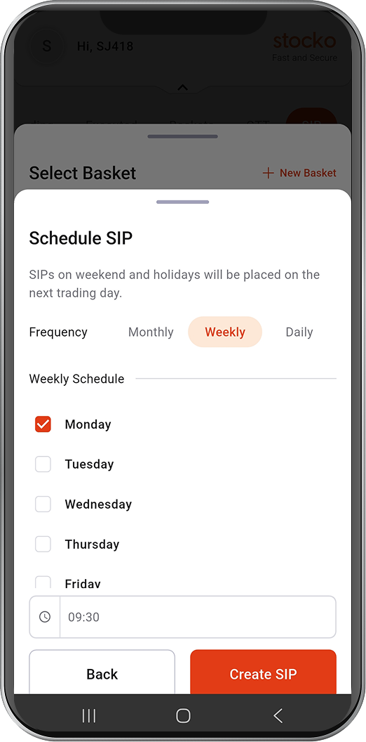 Set daily, weekly or monthly stock SIPs so your equity investing continues automatically in the background.