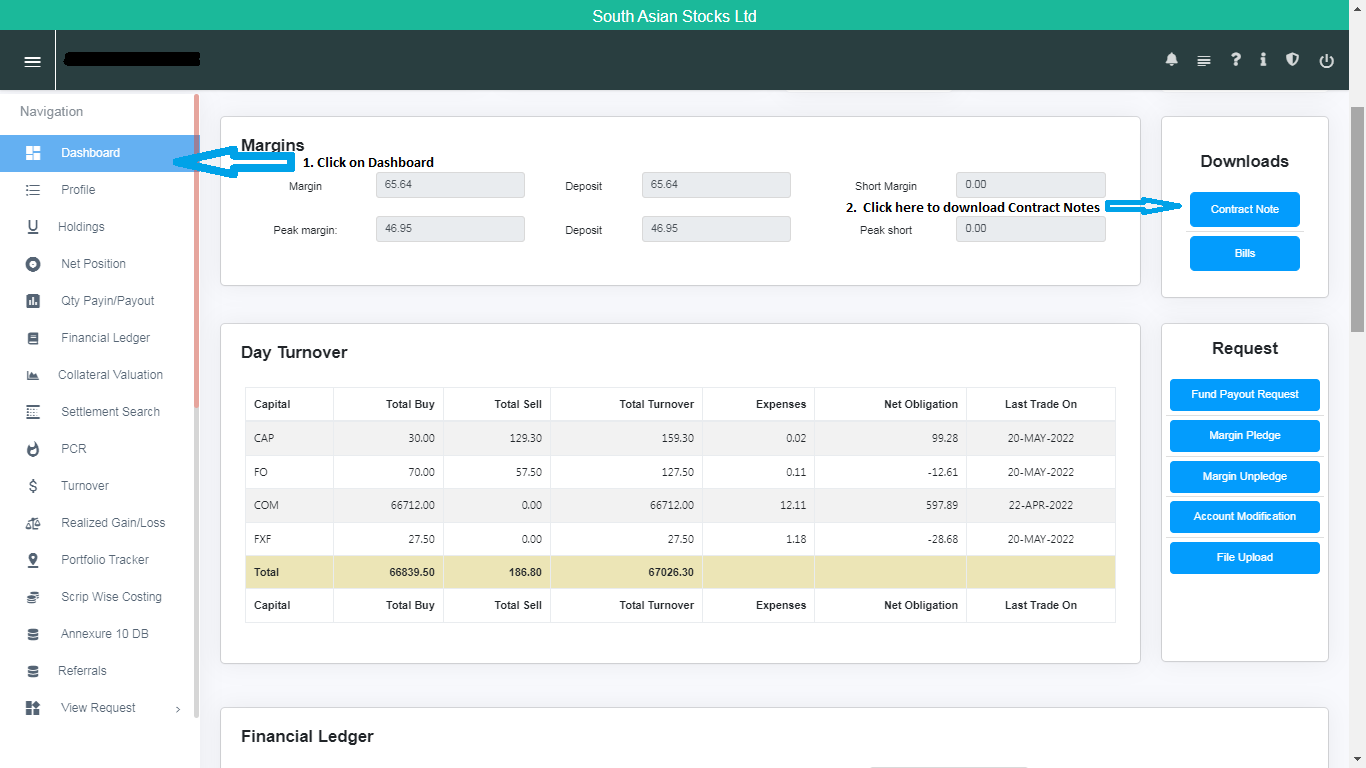 To download the Contract Note, log in to the Stocko Report Portal and select Contract Note from the dashboard.