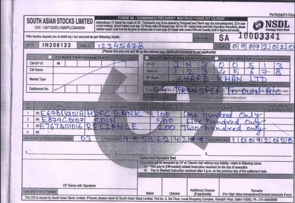 After receiving your completed DIS slip, we will initiate the share transfer request.