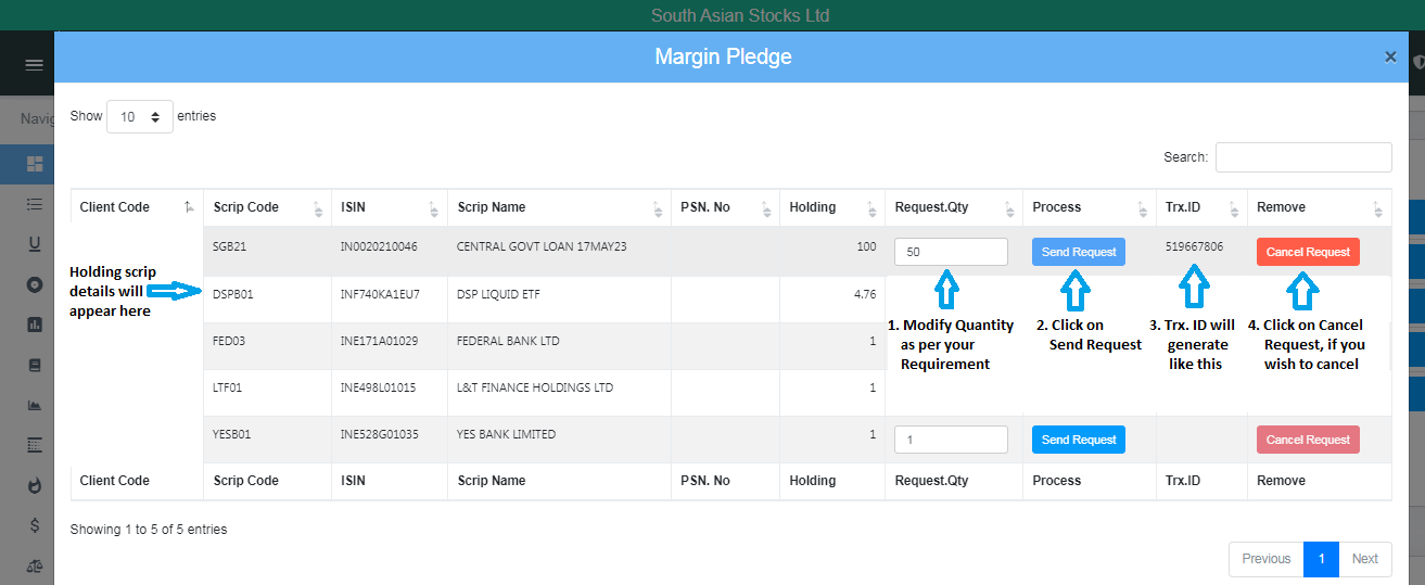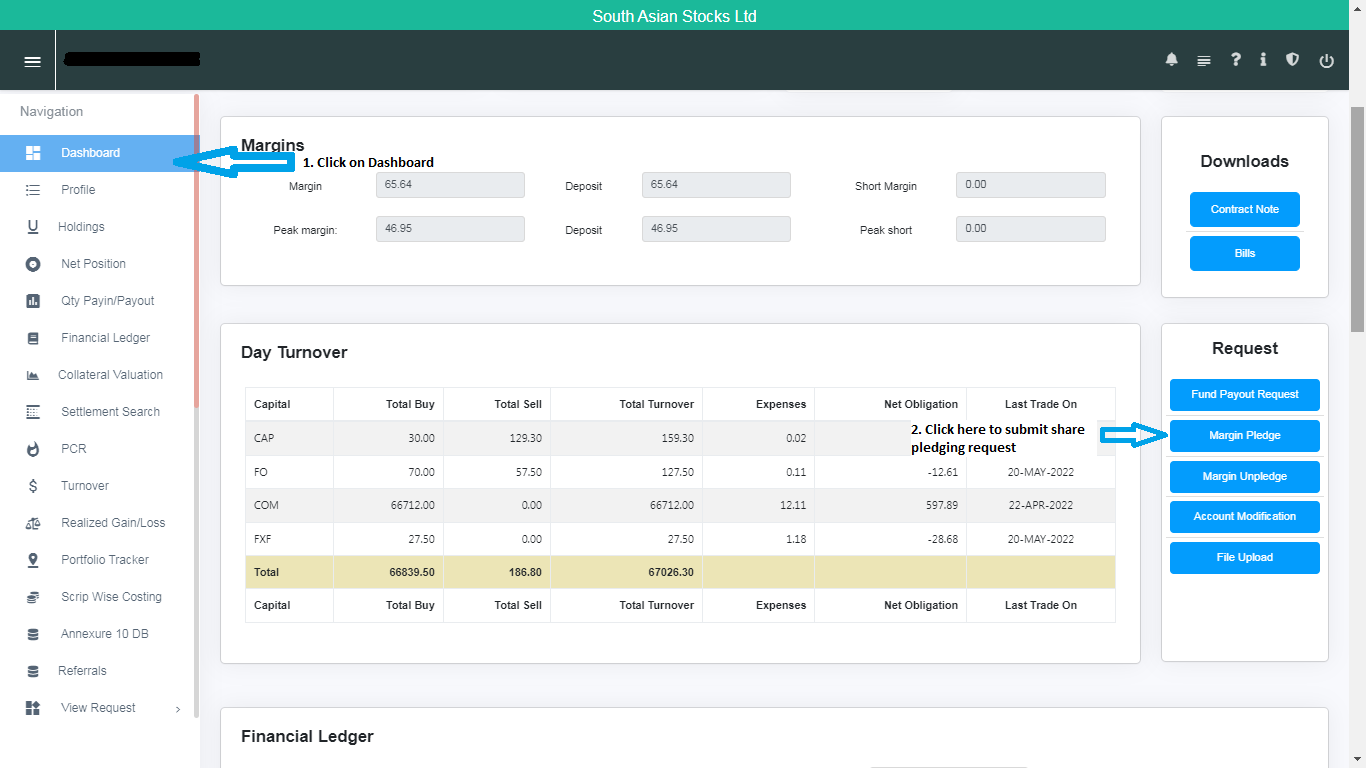 After activating Stock Plus/Equity Plus, you can submit a Pledging Request on the Stocko Report Portal by following the steps below: